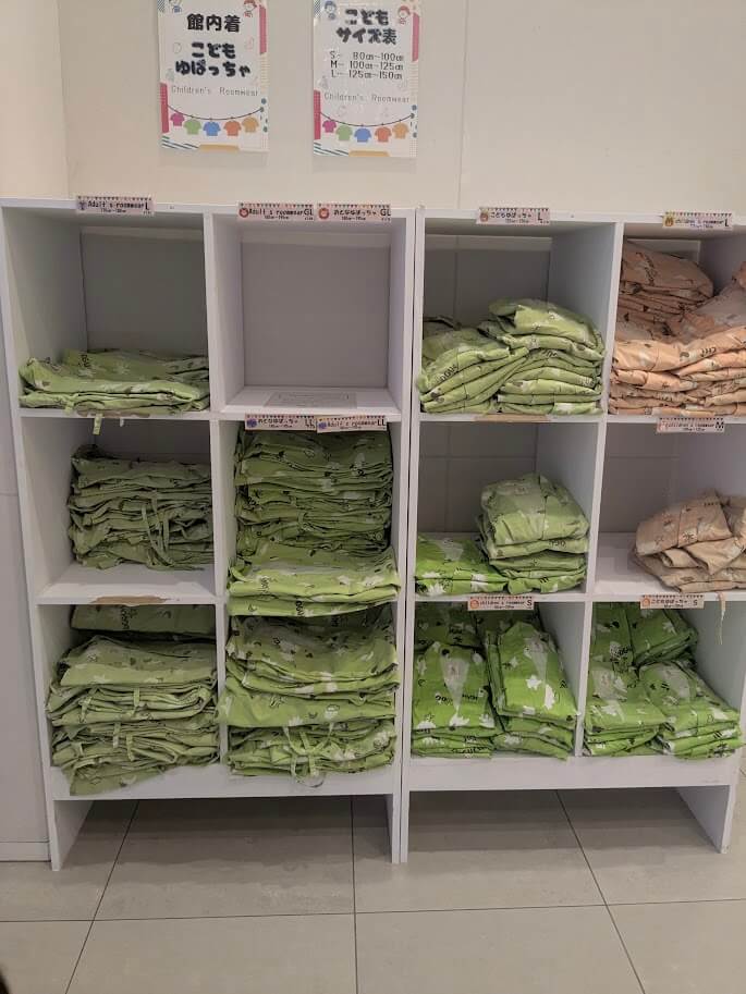 子供用のゆぱっちゃは1Fのフロント前に各サイズの浴衣が準備されており、必要なサイズを選ぶ形でした。